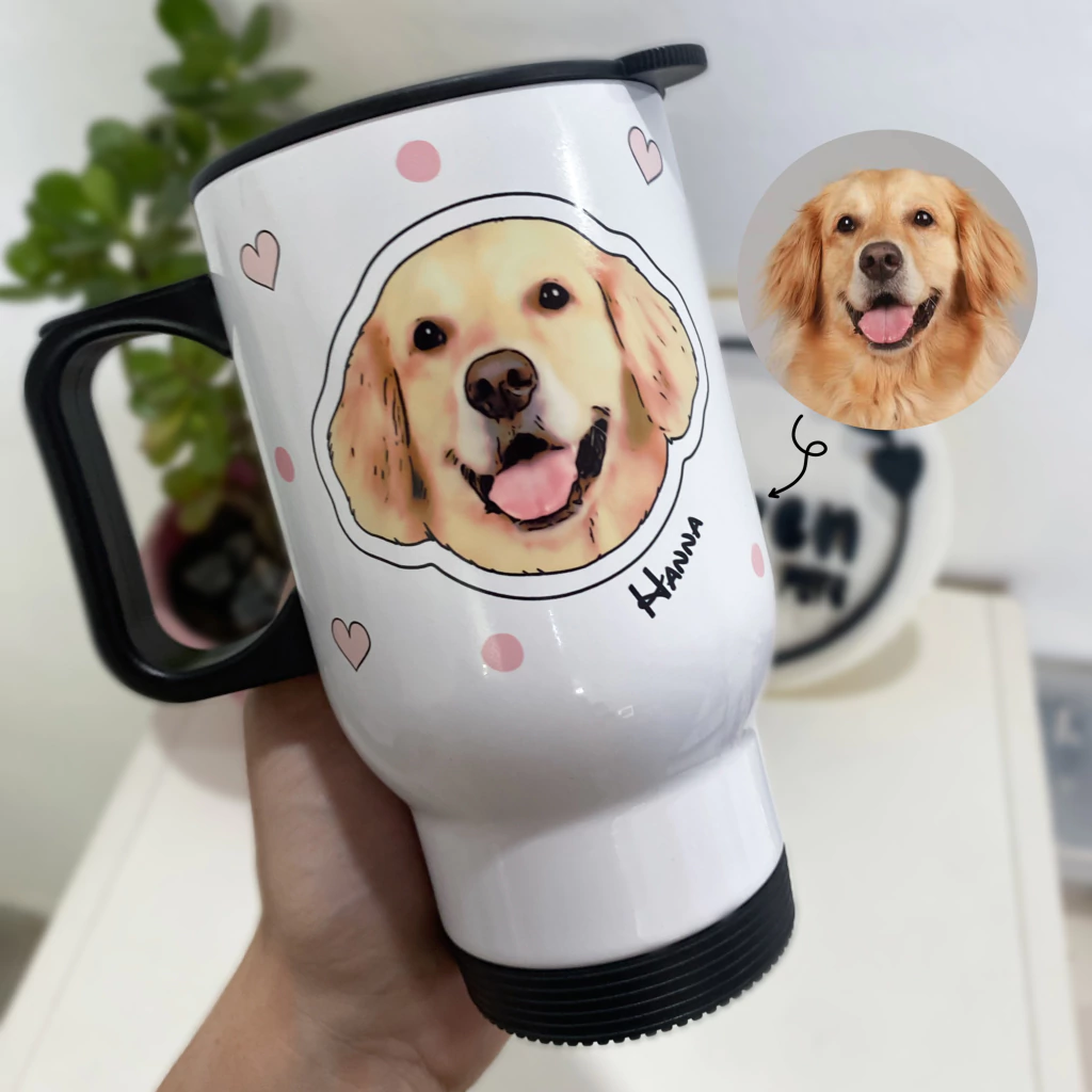 Jarro térmico de acero inoxidable personalizado con las caritas de tus mascotas.